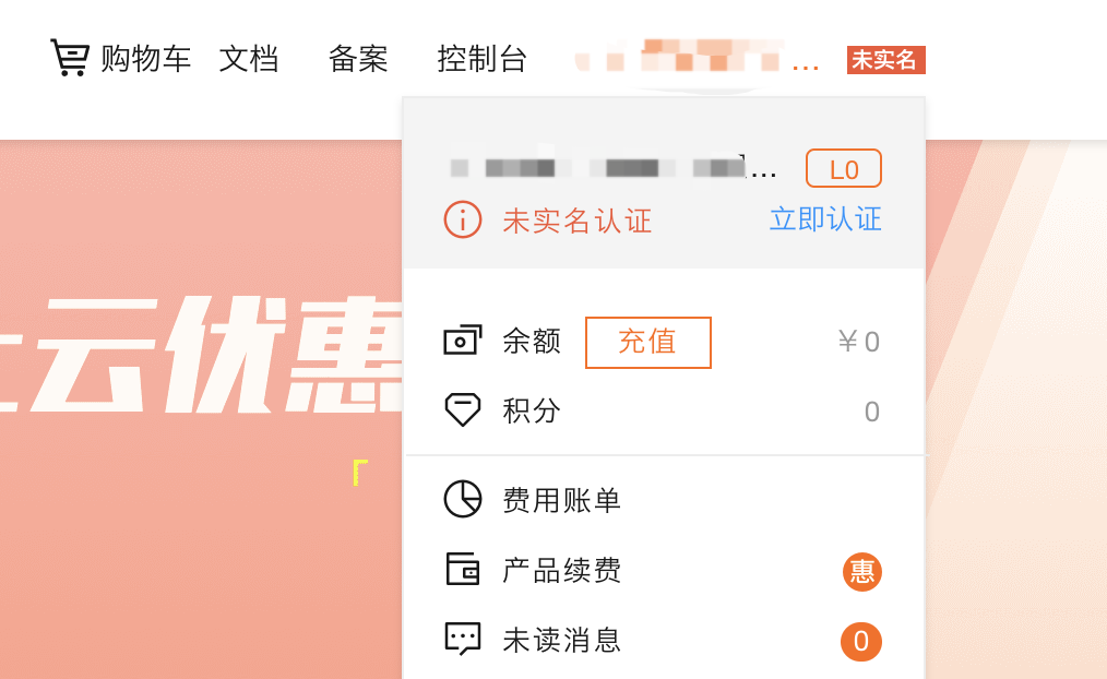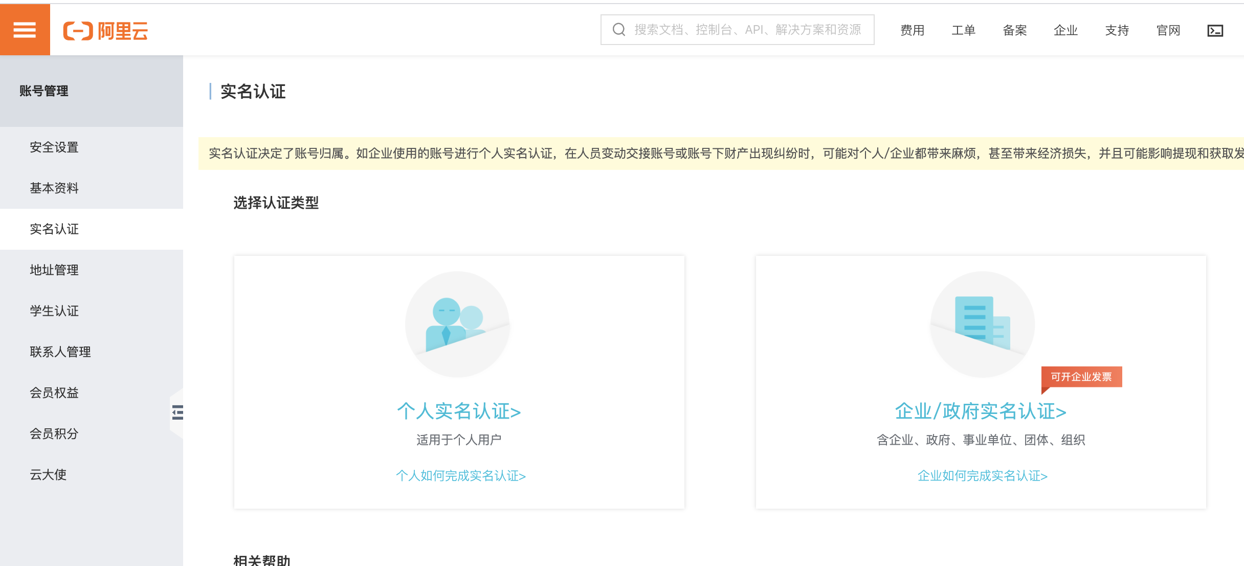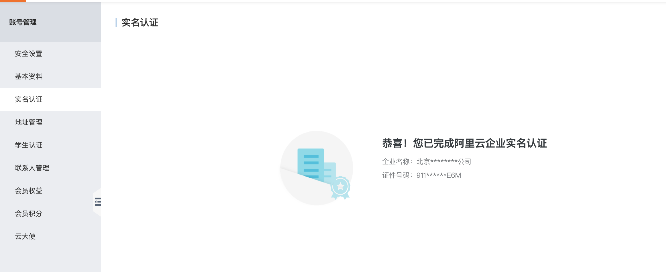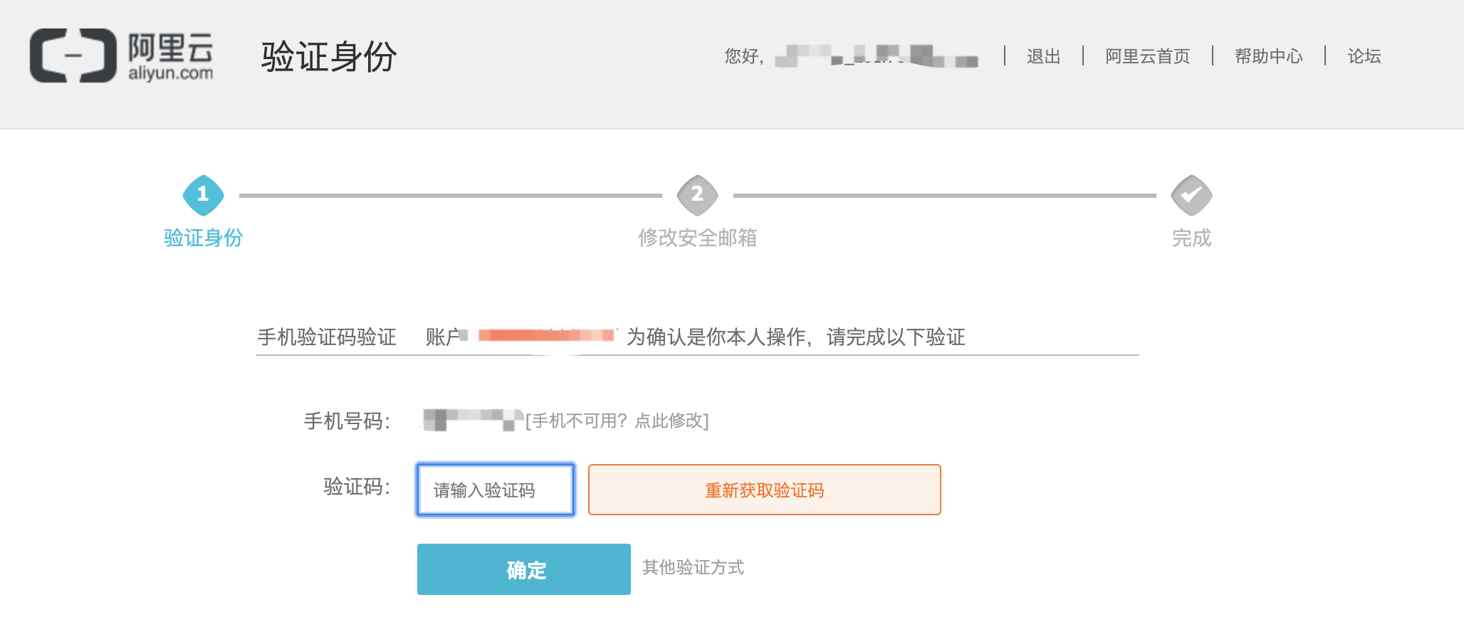 阿里云账号注册:链接:【点此登录】用户名:企业中文名字,密码自定登录并绑定安全邮箱,第一步验证手机号验证码; ii. 第二步输入邮箱并验证邮箱验证码 验证成功后登录下面开