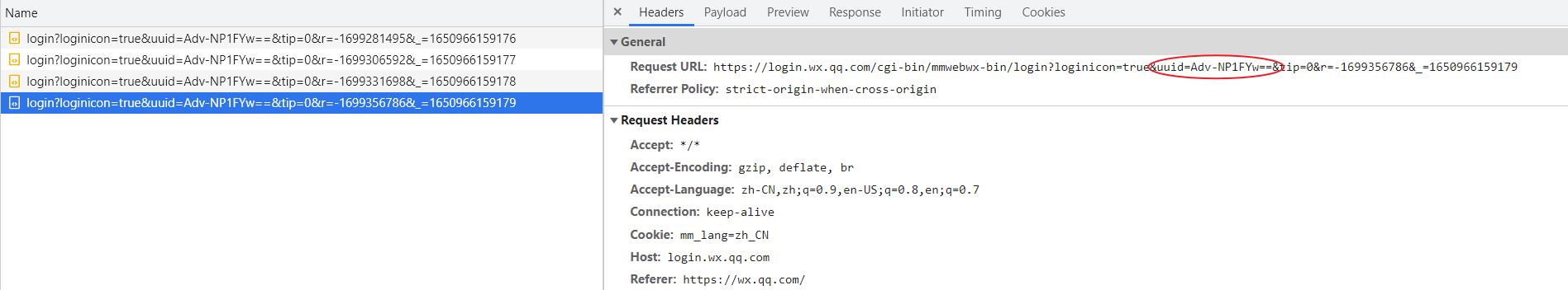 点击登录,并在开发者工具中找到二维码 id(uuid):