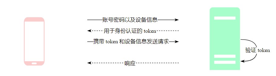 我们在 PC 端登录成功后,可以短时间内正常浏览网页,但之后访问网站时就要重新登陆了,这是因为 token 是有过期时间的,较长的有效时间会增大 token 被劫持的风险。但是,手机端好像很少有这种问题,例如微信登录成功后可以一直使用,即使关闭微信或重启手机。这是因为设备信息具有唯一性,即使 token 被劫持了,由于设备信息不同,攻击者也无法向服务端证明自己的身份,这样大大提高了安全系数,因此 token 可以长久使用。手机端通过账号密码登录的过程如下: