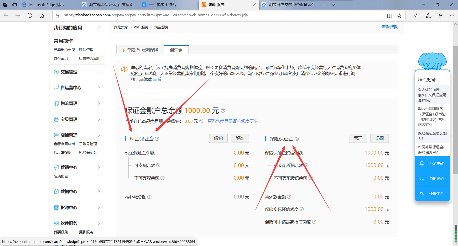 如图所示,左边就是现金保证金,右边则是保险保证金,一般来说商家缴纳保险保证金是最划算的,每年需要缴纳30元保证金,目前本人也是缴纳保险保证金。