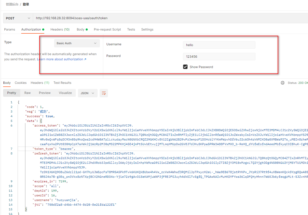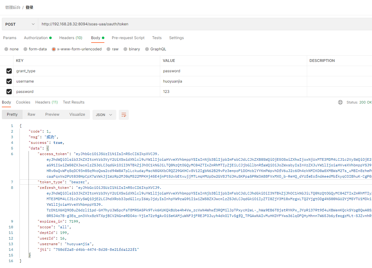 - 此处对token进行了增强,在token中加了几个字段分别表示用户ID和部门ID