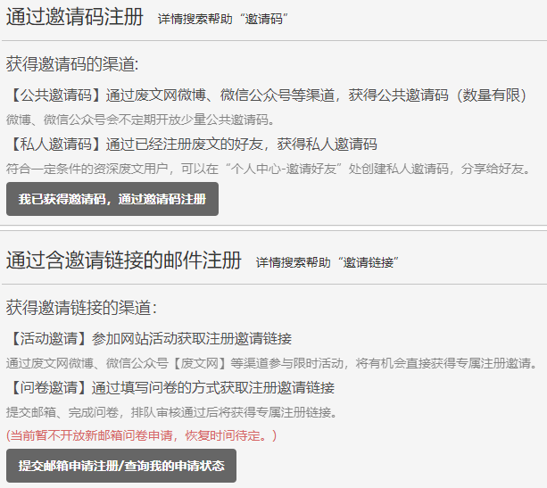1、首先可以去关注废文网官方微博,官方经常会发邀请码,不过失效很快,建议加个特别关心和实时提醒 ,因为邀请码有人数限制,邀请码很快就没了,没了就删了 一般一分钟之内就没。