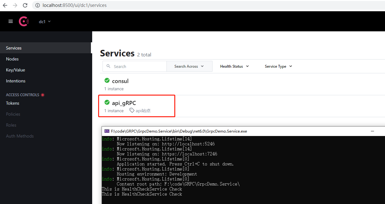 using GrpcDemo.Service.Services; using GrpcDemo.Service.Utils; var builder = WebApplication.CreateBuilder(args); // Additional configuration is required to successfully run gRPC on macOS. // For instructions on how to configure Kestrel and gRPC clients on macOS, visit https://go.microsoft.com/fwlink/?linkid=2099682 // Add services to the container. builder.Services.AddGrpc(); var app = builder.Build(); IConfiguration _configuration = builder.Configuration; // Configure the HTTP request pipeline. app.MapGrpcService<GreeterService>(); app.MapGrpcService<OrderService>(); app.MapGrpcService<HealthCheckService>(); app.MapGet("/", () => "Communication with gRPC endpoints must be made through a gRPC client. To learn how to create a client, visit: https://go.microsoft.com/fwlink/?linkid=2086909"); app.UseConsul(_configuration); app.Run();2.创建健康检查gRPC服务