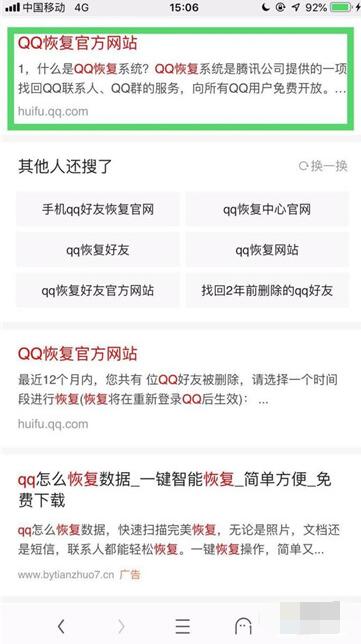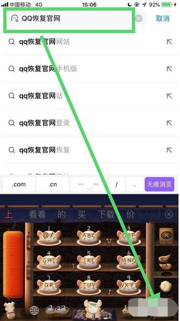 1、在浏览器搜索栏中输入qq恢复官网并点击搜索。