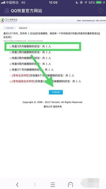 普通用户可以申请恢复3个月内删除的全部好友;会员用户可以申请恢复6个月内删除的全部好友 (查看会员特权详情)