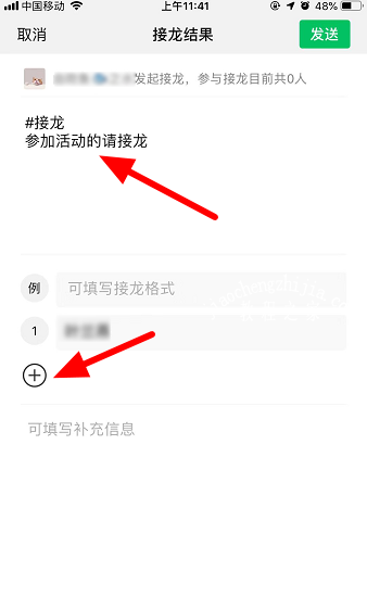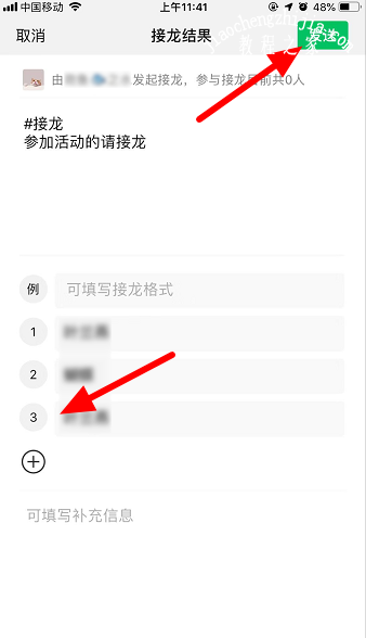 4.编辑接龙信息,点击“+”可添加新的名字或信息。