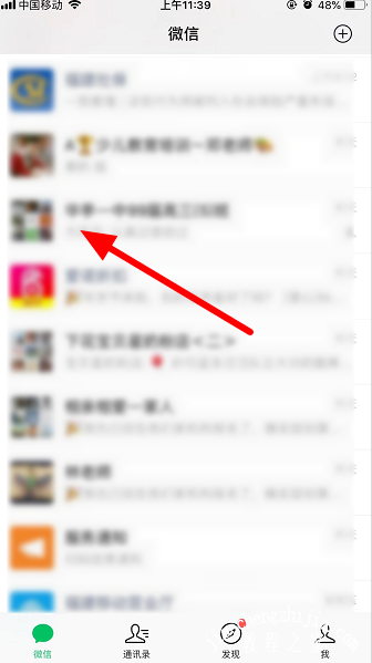 1.首先我们打开微信,进入页面之后,选择一个群聊。