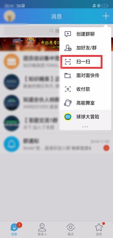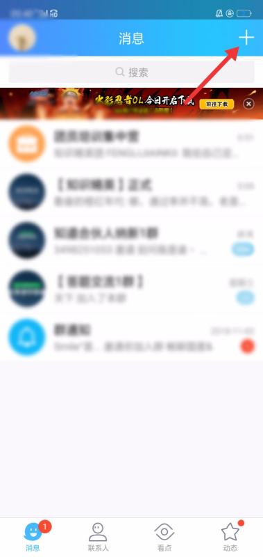 1、QQ扫码登陆跟微信差不多,都是直接打开软件,点击右上角【+】。