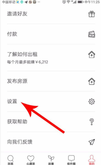 1、点击打开airbnb,点击下面的“我的”。然后点击页面上的“设置”。