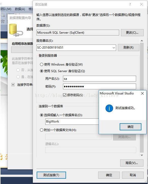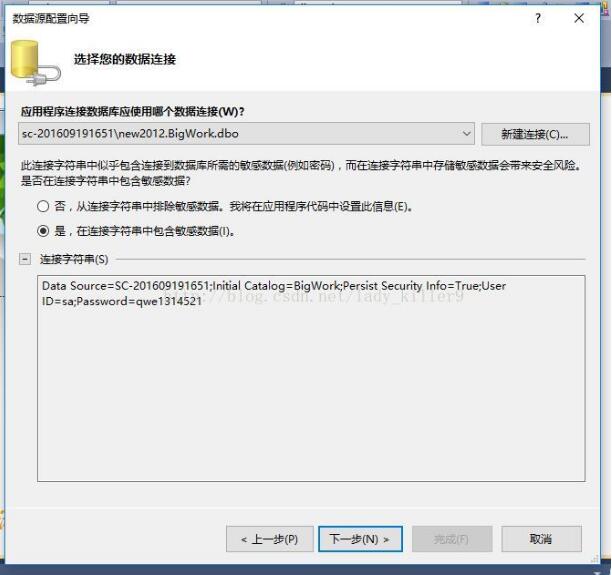 string connectionString = "Data Source=SC-201609191651;Initial Catalog=BigWork;Persist Security Info=True;User ID=sa;Password=qwe1314521";