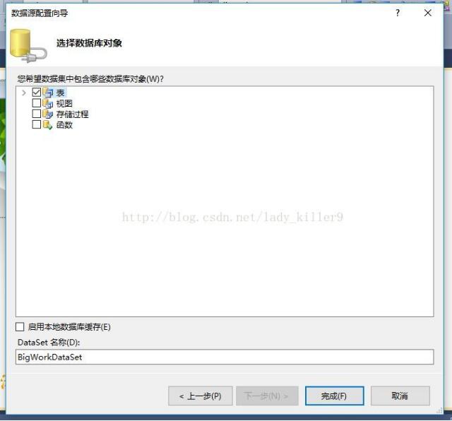 7.选择需要用数据库的那些部分,由于我的工程较小,仅选择了表,读者根据需要自行添加