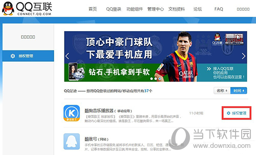 2.此时将打开,切换到授权管理选项卡,点击酷狗音乐播放器右侧的授权管理按钮。