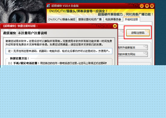 2、如果你想要在软件中直接获取注册码,也可以点击右方的获取注册码选项进行注册码的获取,不管是手机、固话还是网上注册,都是可以轻松购买注册的,如下图所示: