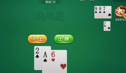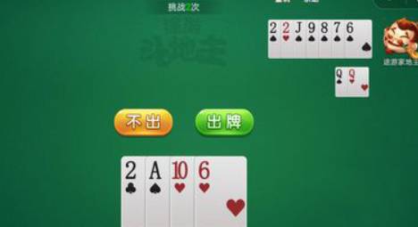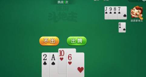 4、途游家地主打出一张J,我们打出一张2,此时地主*大的牌是9,我们手里是A和6,先打出一张A,他要不起再一张6就过关了。