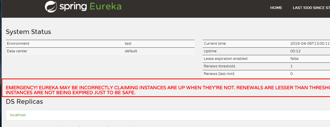 Eureka Server 触发自我保护机制后,页面会出现提示: