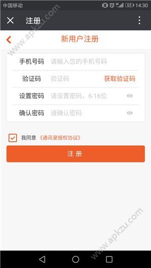 3、然后就可以进入到注册页面,输入你的手机号码,点击获取验证码,输入收到的短信验证码,最后再设置一个登录密码,完成以后点击注册就可以了。