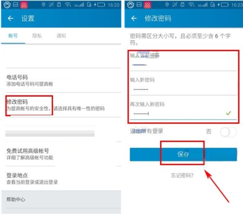 2、在设置界面点击【修改密码】,输入新密码,点击【保存】即可。