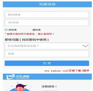 4、现在就需要完善自己的个人信息,填写自己的真实姓名与QQ号,设置密保问题,点击完成,就完成注册了哦。