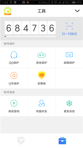 1、打开手机上最新的QQ安全中心,在这里点击右下角的工具页面进入!