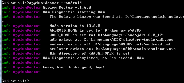 npm install -g appium-doctor appium-doctor --android