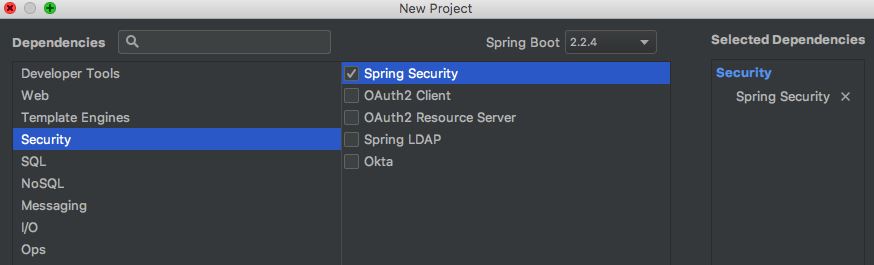 <dependency> <groupId>org.springframework.boot</groupId> <artifactId>spring-boot-starter-security</artifactId> </dependency>