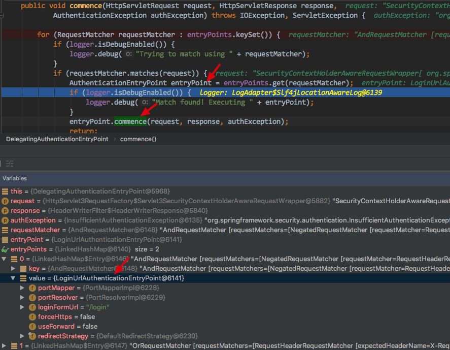该过滤器它会接收到FilterSecurityInterceptor抛出的 AccessDeniedException异常)并且进行捕获,然后发送重定向到/login请求