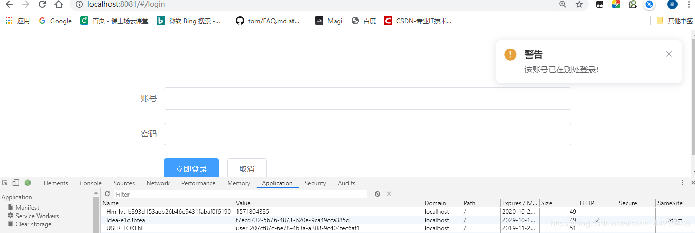 实现用户在浏览器登录后,跳转到其他页面,当用户在其它地方又登录时,前面用户登录的页面退出登录(列如qq挤号那种方式)