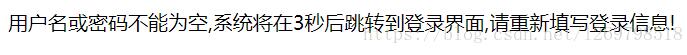 echo "用户名或密码不能为空,系统将在3秒后跳转到登录界面,请重新填写登录信息!";