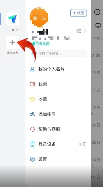 1、打开飞书点击左上方头像打开侧边菜单栏。