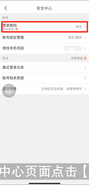 点击【账号与安全】选项,接着在安全中心页面点击【登录密码】,
