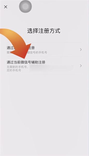 第三步:选择“注册一个新账号”,接下来点击“通过当前微信号辅助注册”选项,