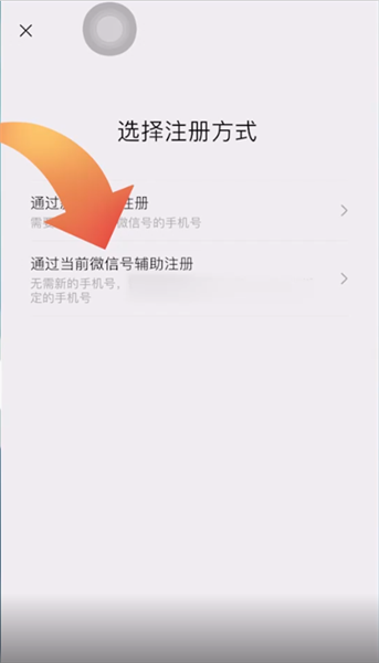 第三步:选择“注册一个新账号”,接下来点击“通过当前微信号辅助注册”选项,