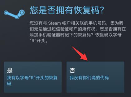 6、接着,如果我们保存了恢复码,那么点击左侧“是”,并输入恢复码即可。
