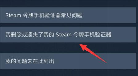11、选择“我删除或遗失了我的steam令牌手机验证器”。
