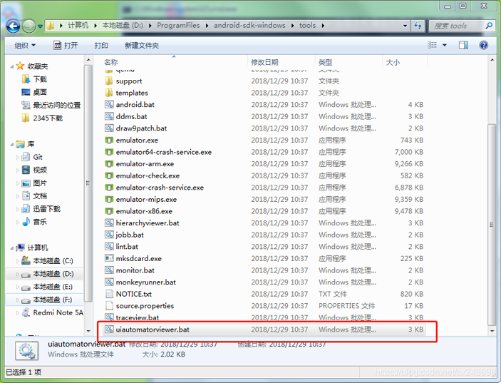 要想让手机app自动登录,也就是让app自己操作。所以在脚本中我们需要对app控件进行操作,那么我们需要获取控件的信息。可以使用..\android-sdk-windows\tools目录下的uiautomatorviewer.bat来获取控件相关信息