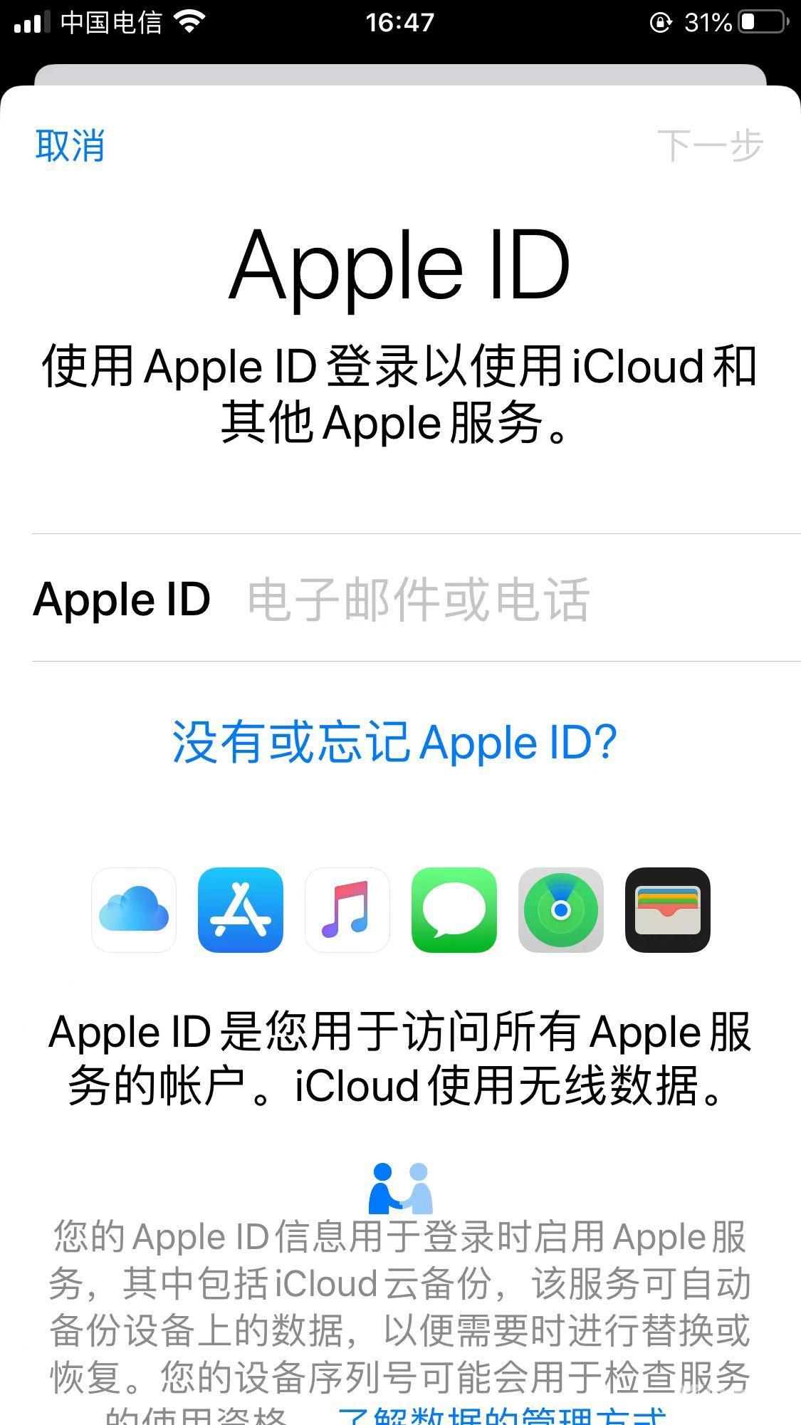 当我们突然从安卓换到苹果手机的时候,把苹果手机开机激活以后,我们马上就要下载软件,就会提示要id才能下载。