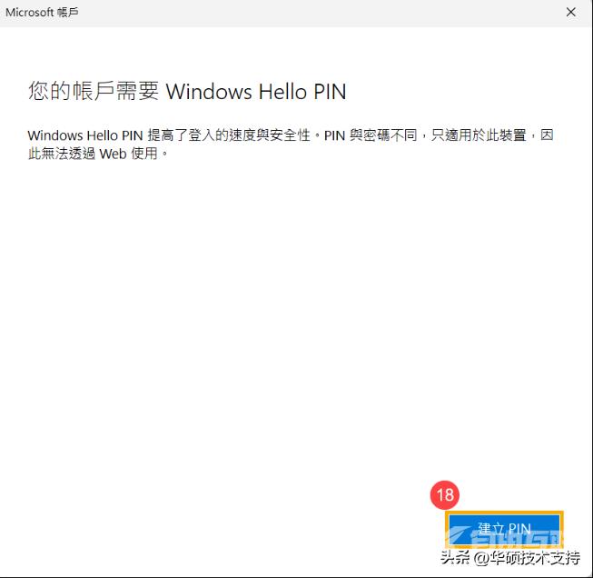 10,Windows为了提高登入的速度和安全性,可能会需要您使用PIN码登入,请点选[建立PIN]⑱。