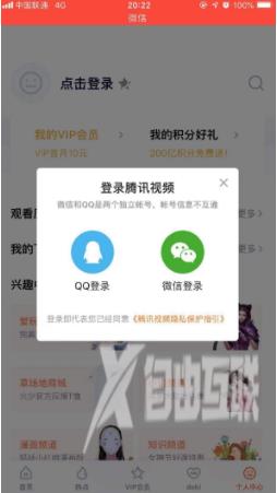 1.使用手机登录的用户,只需在手机下载一个腾讯视频APP,之后打开APP点击右下方“个人中心”,进入页面后点击“点击登录”,这时会弹出QQ和微信两种登录渠道,你择其一便可实现账号共享。