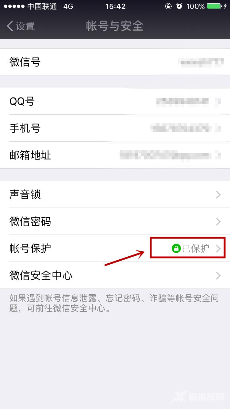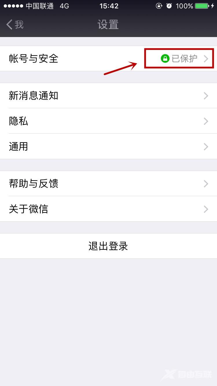 进入账号与安全:点击选项保护账户(如图所示)