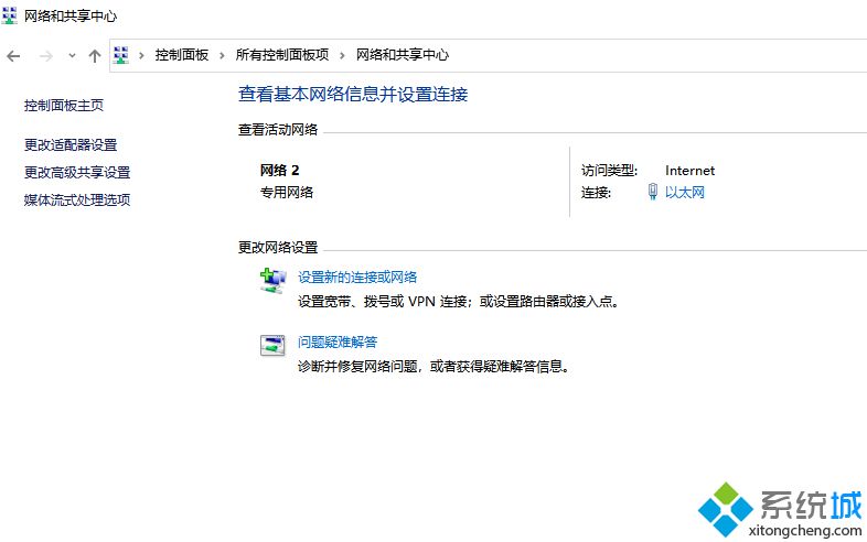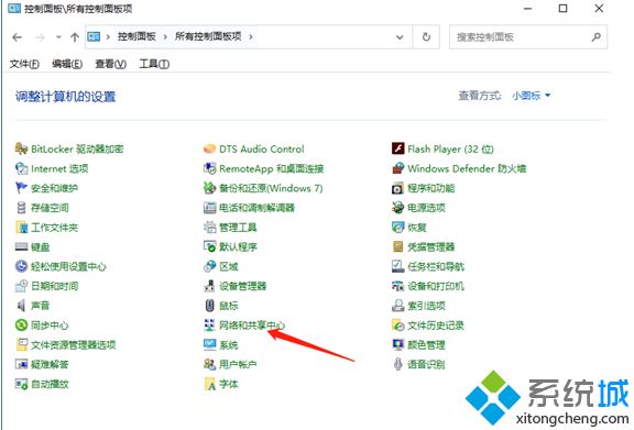 4.在图标缩小以后,会出现一个网络和共享中心功能,点击这个功能