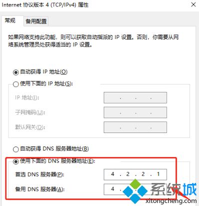 8.点击属性按钮,在新页面中将首选dns改为4.2.2.1.备用dns改为4.2.2.2。