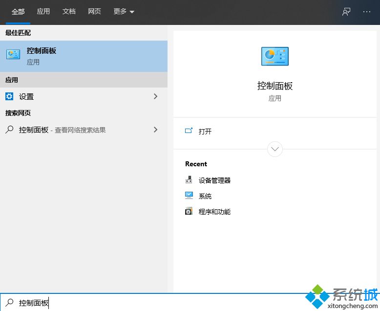 2.在win10左下角的搜索功能里搜索控制面板,直接点击打开