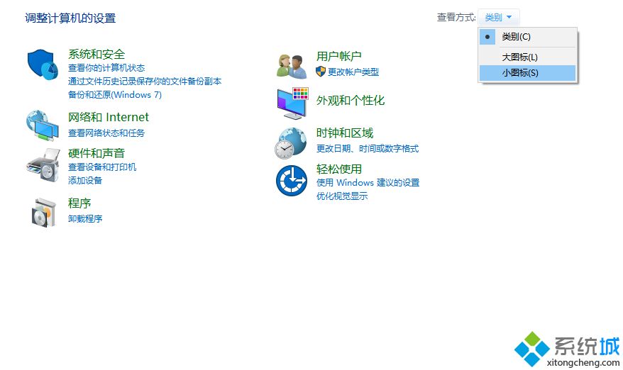 3.之后直接打开控制面板,在右上角的查看方式里面选择小图标