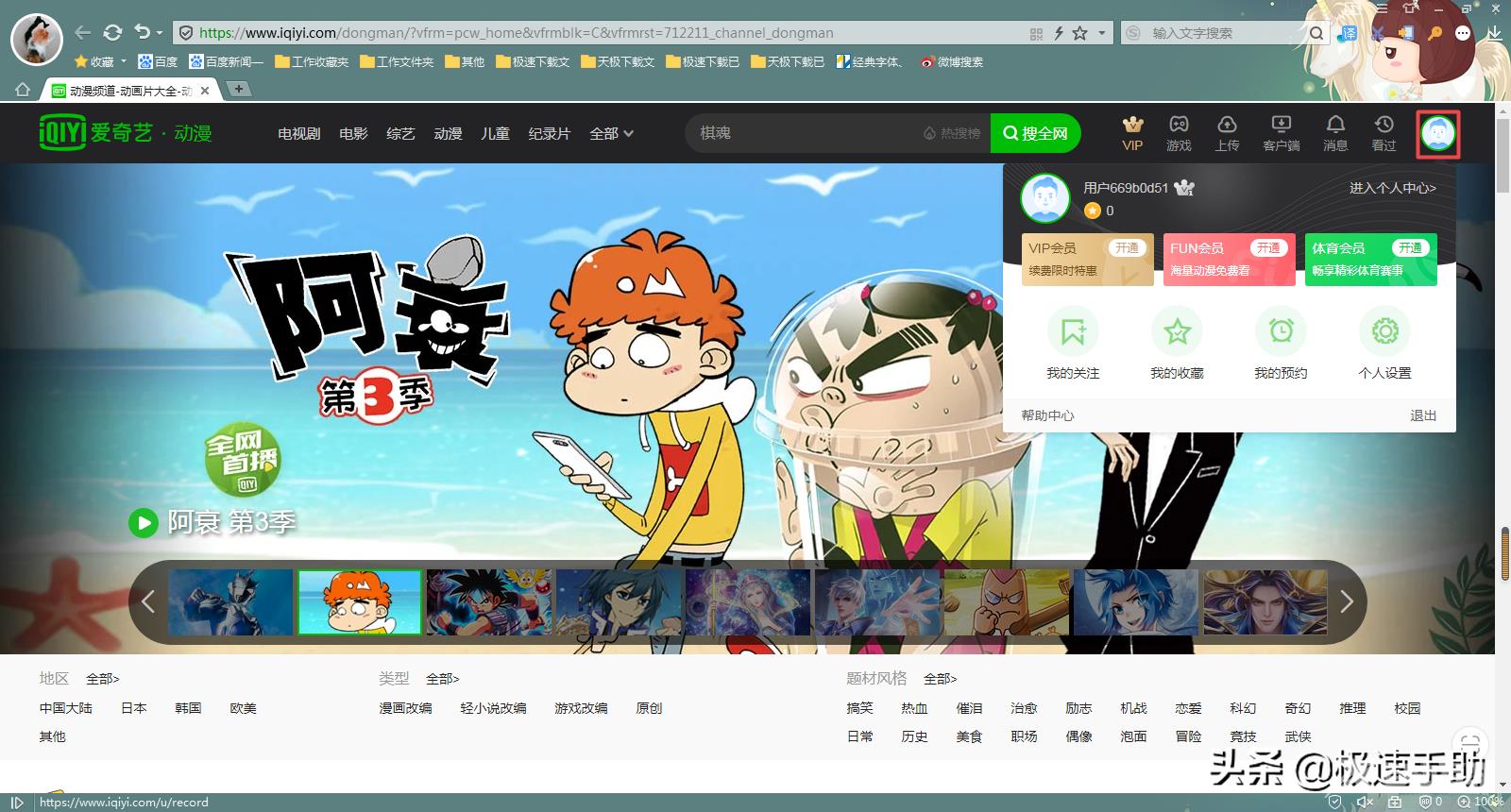 第一步,在电脑的浏览器上,打开爱奇艺官网,然后点击界面右上角的小人像图标。