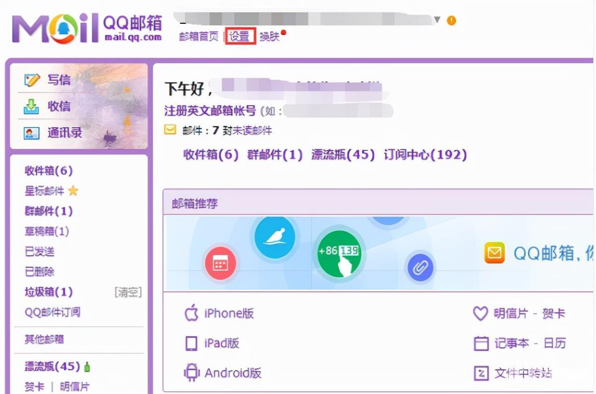 1,登录自己需要设置的QQ邮箱,点击百上方的“设置”,如下图所示。