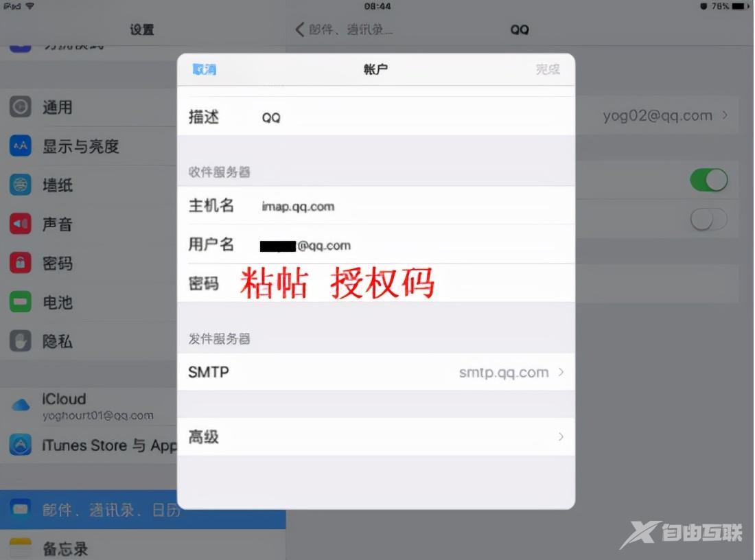 6,现在打开自己的苹果手机,点击设置-邮箱,在里面的密码处粘贴刚刚复制的授权码就。这样,我们就完成了登录。
