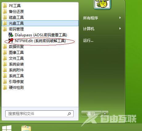 7,开机U盘启动进入PE系统,点左下角的开始按钮,找到密码管理-系统密码管理工具