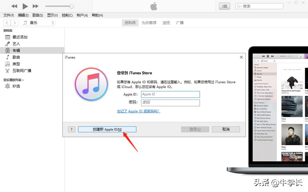 如果安装的有最新版iTunes,还可使用iTunes注册新的Apple ID。打开iTunes软件,点击【登录iTunes Store】,再点击创建新Apple ID,再根据页面提示完成注册即可。