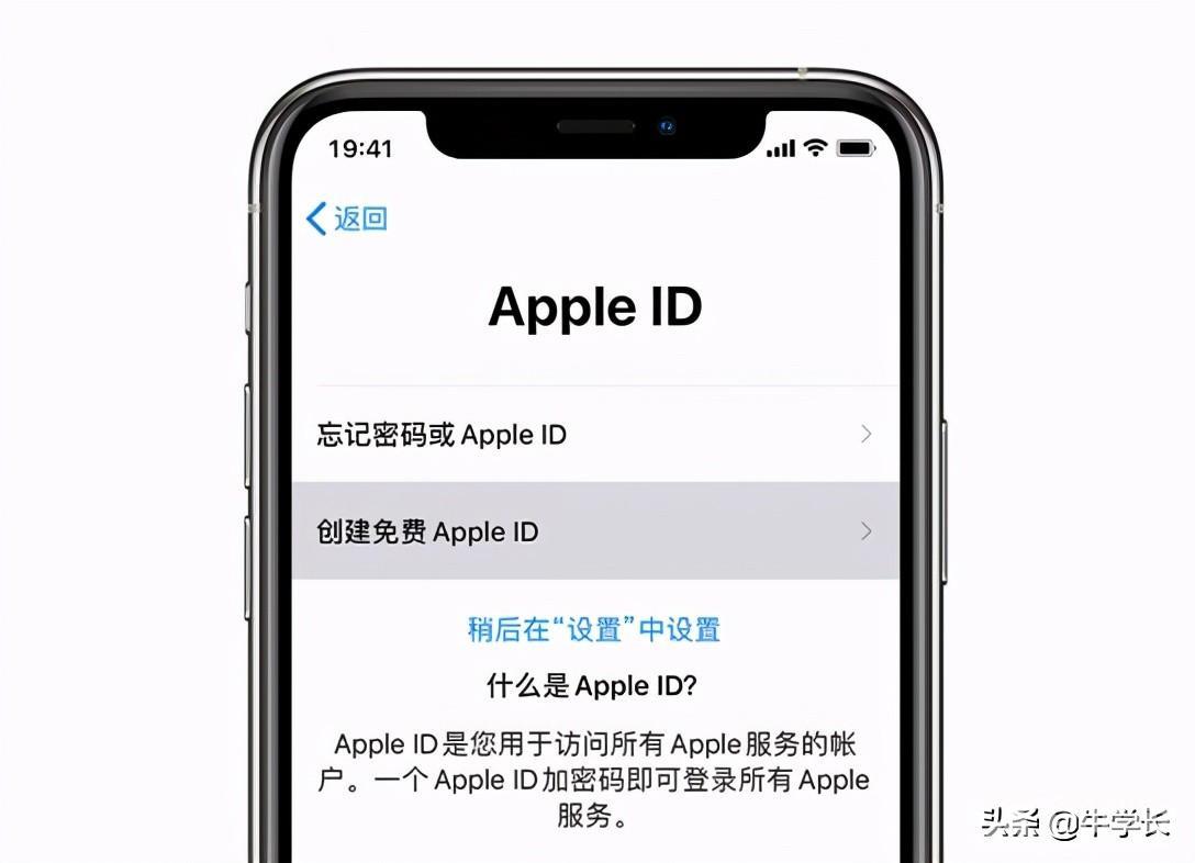 当购入一台新iPhone时,在开机设置时,会出现“Apple ID”界面,如果是在没有Apple ID的情况下,则可以直接点击“创建免费Apple ID”,再根据提示操作完成注册即可。