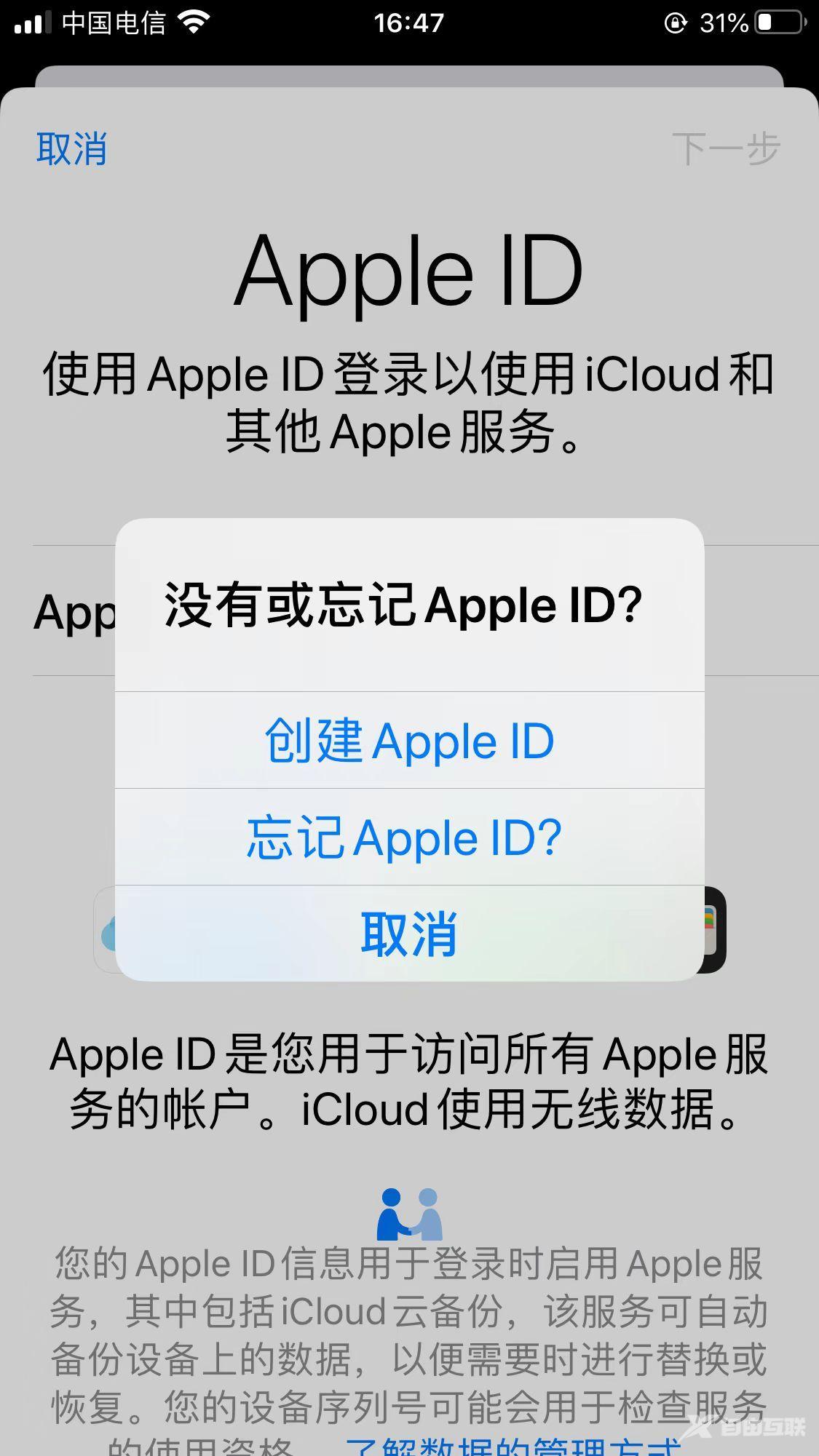 当我们突然从安卓换到苹果手机的时候,把苹果手机开机激活以后,我们马上就要下载软件,就会提示要id才能下载。
